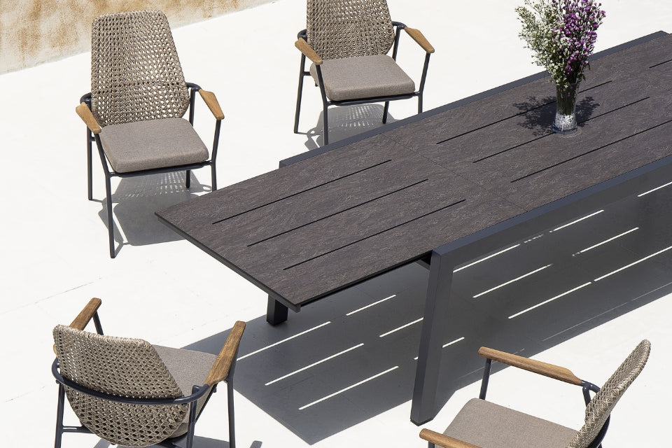 The Clara Collection from Mamagreen brings a refined balance of comfort, craftsmanship and contemporary elegance with seating that features weather-resistant Viennese-style wicker shells, sculpted teak armrests and sleek powder-coated aluminium frames. Hand-woven by skilled artisans and designed to be stackable for practical outdoor living, Clara’s warm, natural palette and sophisticated silhouette elevate patios, terraces or alfresco dining areas with timeless style and enduring comfort.