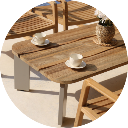 Mamagreen’s outdoor dining furniture emphasise precision craftsmanship, durability, and high-quality materials.